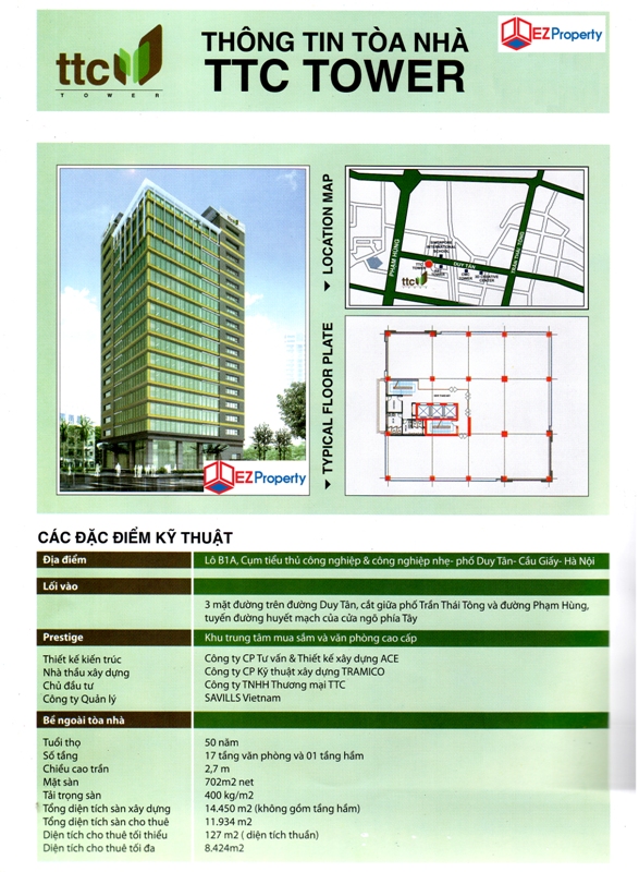 Mặt tiền rộng 50m trên đường Duy Tân, cắt giữa phố Trần Thái Tông và đường Phạm Hùng, tuyến đường huyết mạch của cửa ngõ phía Tây, TTC Tower sở hữu một góc nhìn cảnh quan tuyệt đẹp hướng ra ba mặt đường. Với vị thế chiến lược trong khu vực phía Tây – khu vực phát triển trọng tâm của Hà Nội, từ TTC Tower chỉ mất 20 phút quý vị có thể dễ dàng di chuyển vào khu vực trung tâm cũng như ra sân bay quốc tế Nội Bài. TTC Tower nằm trong quần thể văn phòng, trụ sở của các bộ ban ngành như Bộ Tài nguyên và Môi trường, Bộ Nội vụ; các trường đại học như Đại học Quốc gia, Học viện Báo chí và Tuyên truyền, Đại học FPT, Đại học Công nghệ… Xung quanh là những khu đô thị mới với tốc độ phát triển mạnh mẽ và lượng dân cư đông đúc như khu đô thị Cầu Giấy, khu đô thị Mỹ Đình, khu đô thị Yên Hòa.